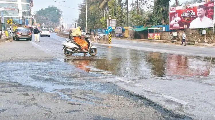 या गळतीमुळे केवळ रस्त्याची अवस्था खराब होत नसून पिण्याचे पाणीही मोठ्या प्रमाणावर वाया जात आहे.